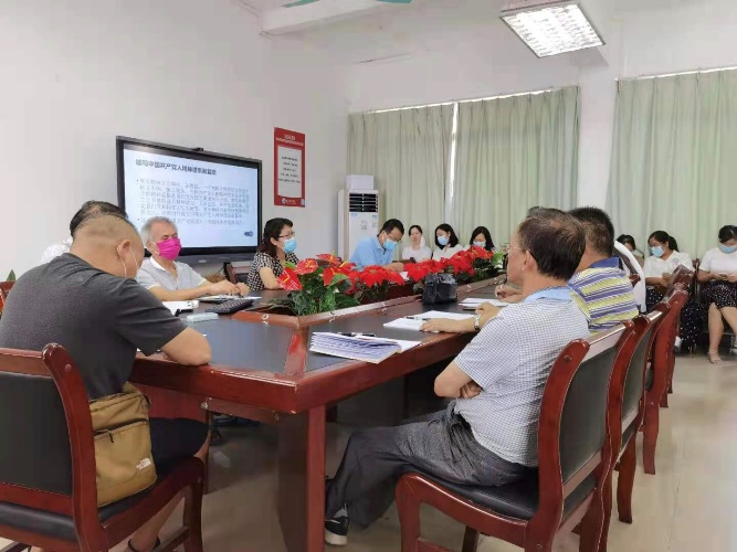 7月1日,基础教学部(人文社科部)党支部在部门411会议室召开党史专题学习会,深入学习习近平总书记关于革命传统的重要论述,部门全体教职工参会,会议由党总支书记尹伶俐同志主持。