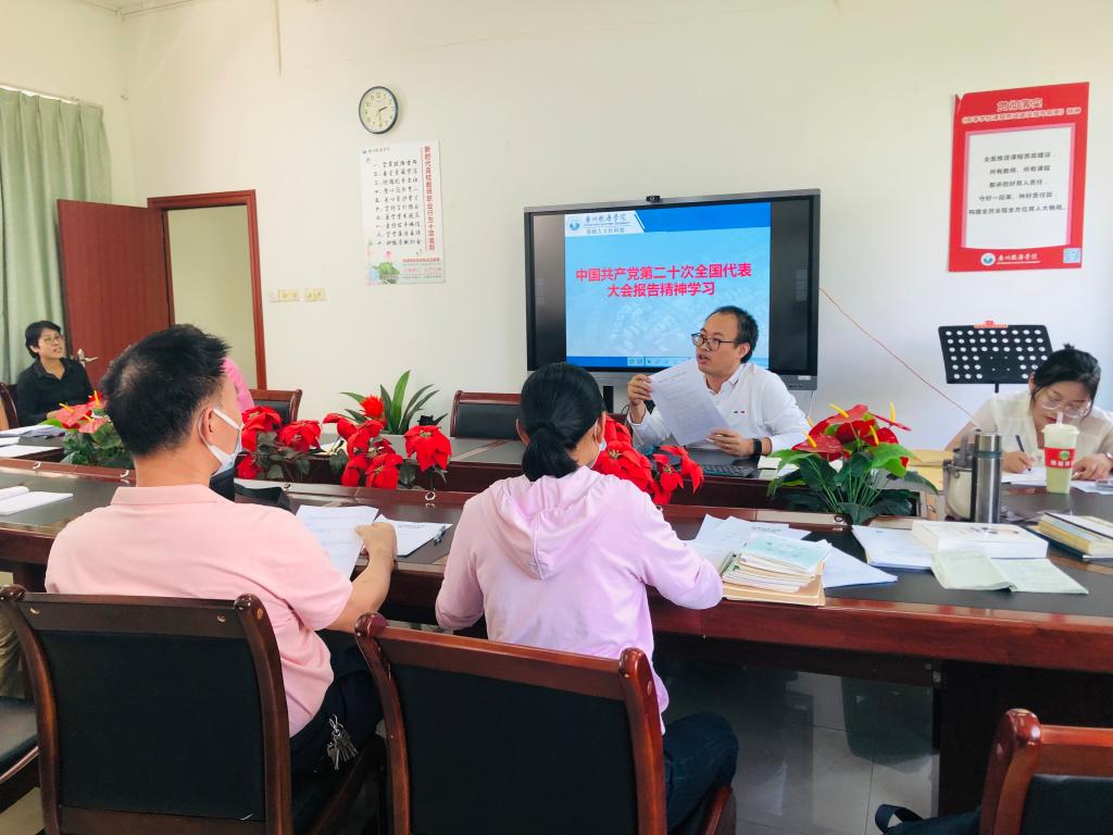 10月20日下午,基础教学部(人文社科部)教工党支部在部门411会议室开展党支部书记讲党课专题活动---学习领会习近平总书记在党的二十大开幕会上的重要讲话精神,会议由教工第一党支部书记刘卫斌同志主持。