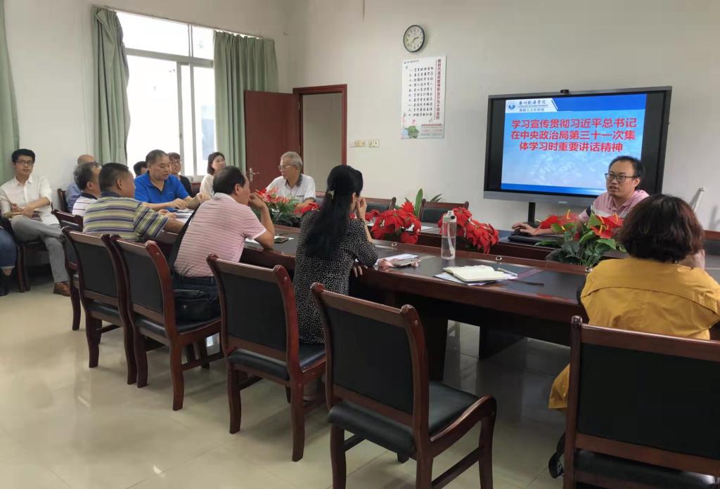 11月4日,基础教学部(人文社科部)在部门411会议室开展政治理论学习活动,深入学习习近平总书记在中央政治局第三十一次集体学习时的重要讲话精神专题内容,部门全体教职工参会,会议由党总支纪检委员刘卫斌同志主持。