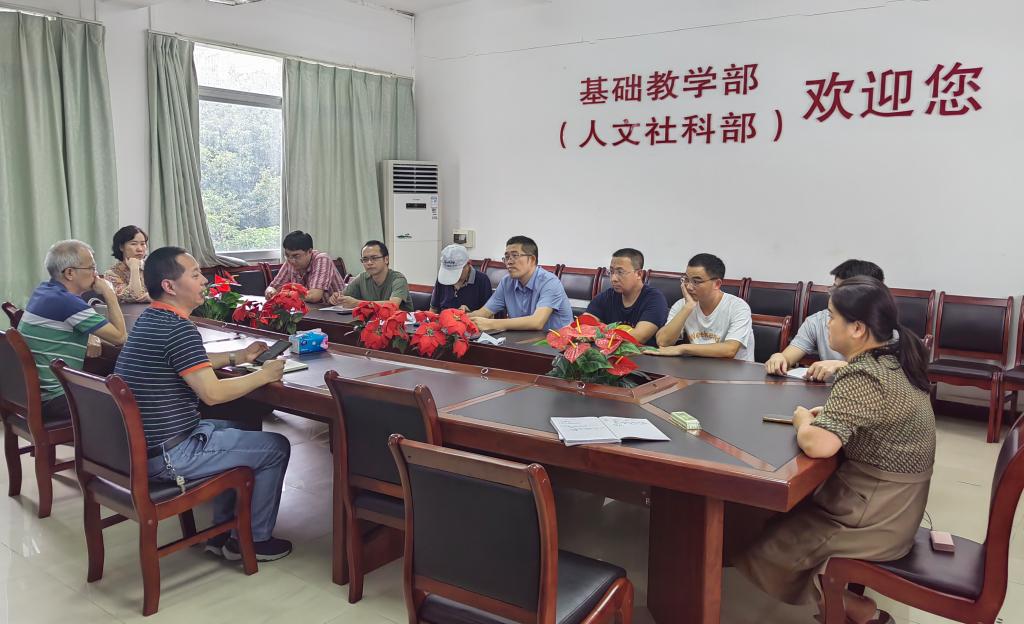 为深入学习贯彻习近平新时代中国特色社会主义思想,推进主题教育走深走实。7月5日下午,基础教学部(人文社科部)在行政楼B楼411会议室召开骨干教师座谈会。部门党总支书记、主任王泽文,蒋翔副主任和部分骨干教师参加了此次座谈会。