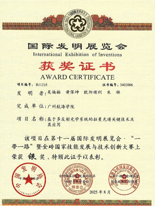 近日,第十一届国际发明展览会暨“一带一路”金砖国家技能发展与技术创新大赛在广州举行。公司吴楠楠副教授等申报的“基于多反射光学系统的拉曼光谱关键技术及其应用”项目荣获大赛银奖。这是继欧阳顺利教授荣获“中国发明协会发明创业奖创新奖”二等奖励后,公司在科研创新领域取得的又一重要奖项,彰显了公司持续增强的科研创新活力。