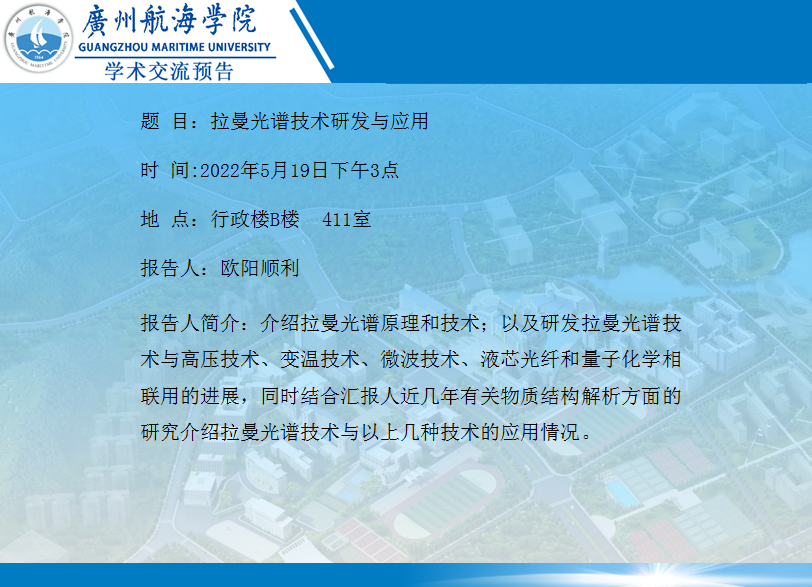 欧阳顺利教授学术讲座预告:拉曼光谱技术研发与应用