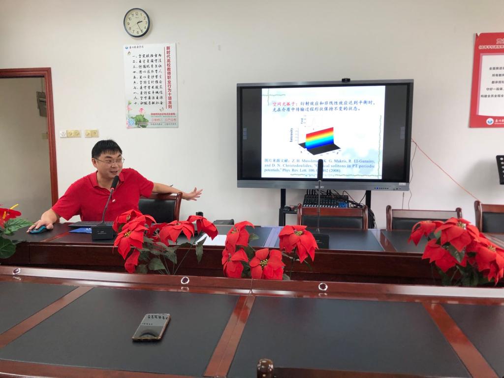 2022年11月17日下午,在行政楼B楼411会议室,朱兴教授应邀作了“分数阶衍射效应的空间光孤子”讲座。