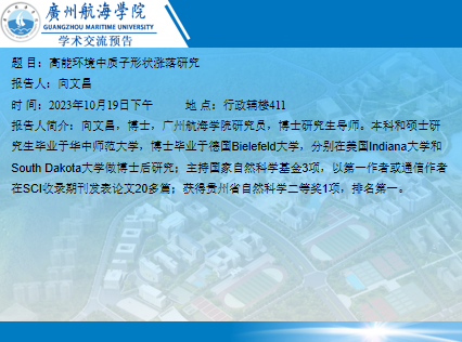 学术讲座预告:向文昌老师《商能环境中质子形状涨落研究》