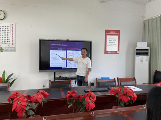 2023年10月26日下午,在行政楼B楼411基础教学部会议室,向文昌教授作了“高能环境中质子形状涨落”的学术报告。报告首先介绍质子在自然界中和高能环境中一些基本性质,然后介绍用色玻璃凝聚方法计算质子的结构函数,重点介绍在相关和非相关衍射时质子微分散射截面的计算方法。该研究发现在高能环境中质子里的价夸克具有不同的分布宽度。报告内容引起了教师们的浓厚兴趣。报告结束后,向教授与教师们进行了深入讨论。