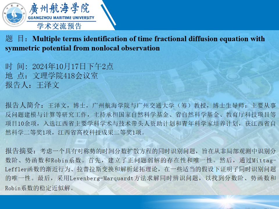 王泽文教授学术讲座预告