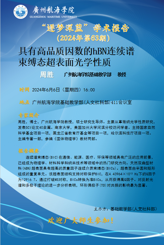 “逐梦深蓝”学术报告:周胜教授学术讲座